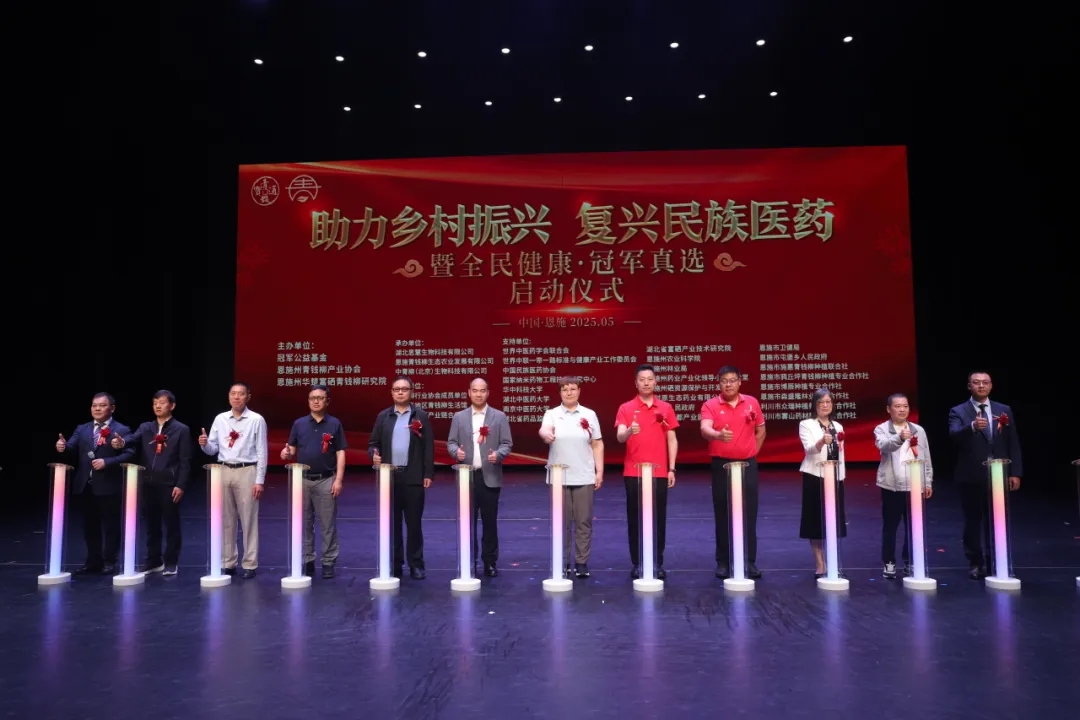 5月17日,由中国药文化研究会主办,湖北思慧生物科技有限公司承办的“助力乡村振兴 复兴民族医药——中国药文化研究会青钱柳分会成立大会暨首届青钱柳产业发展论坛”在恩施州文化中心隆重举行,伴随着一曲热情洋溢的土家歌舞表演《花开清江》拉开大会序幕,奥运冠军孙福明、世界武术冠军柴云龙、奥运冠军、冠军公益基金发起人孙海涛受邀助阵,中国药文化研究会会长禹同生、中国药文化研究会副会长李海涛、湖北省药品监督管理局恩施分局局长刘可红、恩施州药业产业化领导小组办公室主任张千红等领导出席大会。恩施市人民政府副市长朱正齐致欢迎辞,欢迎来自全国各地的青钱柳用户代表到世界硒都、华中药库——恩施寻“青”探宝,见证地标恩施青钱柳道地品质。中国药文化研究会青钱柳分会正式成立,禹同生会长为青钱柳分会授牌并发表重要讲话指示,樊建元会长会上郑重宣读就职报告,标志着中国青钱柳产业高质量发展中的又一重要里程碑,具有重要意义。大会还表彰了为青钱柳事业做出突出贡献的优秀市场、优秀生活馆等先进集体和先进个人;代表们还见证了冠军公益基金与湖北思慧生物科技有限公司签约仪式,全民健康·冠军先行系列活动正式启动,弘扬医药文化、复兴民族医药,书写乡村振兴与健康中国新的时代答卷。